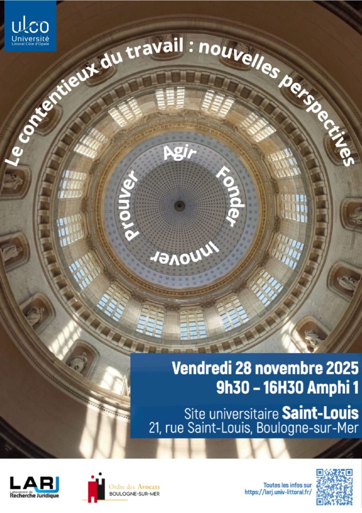 Le colloque organisé par le Laboratoire de Recherche Juridique de l’Université du Littoral Côte d’Opale, en partenariat avec le Barreau de Boulogne-sur-Mer, se déroulera cette année le 28 novembre 2025 sur le Campus de l’Université de Boulogne-sur-Mer 21 rue Saint Louis de 9h30 à 16h30. Il portera sur « Le contentieux du travail : nouvelles perspectives ». La journée sera organisée en 4 […]